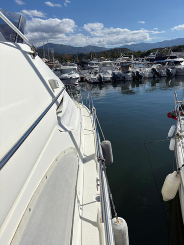 Le Cranchi Atlantique 40 est apprécié pour sa qualité de construction et son design. Il offre un bon espace intérieur avec 2 cabines et 2 salles de bain, 1 salon confortable et une cuisine bien équipée. La disposition intérieure et l’équipement sont bien adaptés à des croisières familiales ou entre amis, avec des espaces de cabines optimisés et un fly bien équipé. Il est motorisé avec 2 x 370 cv Volvo D6, un groupe électrogène, un propulseur d'étrave et un équipement électronique complet. Visite possible tous les jours sur rendez - vous. N'hésitez pas à nous contacter si vous souhaitez plus d'informations.