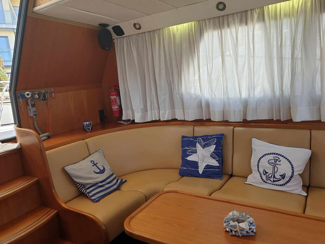 Le Neptunus 145 AK est un trawler à carène semi planante. Sa qualité de construction et ses volumes généreux en font un bateau sûr et confortable. Il possède 3 cabines doubles, 2 salles de bain, un grand salon et une salle à manger en face de la cuisine équipée. La sellerie et les tauds sont de 2023. Sa motorisation Volvo de 2 x 375 cv lui donne une puissance qui lui permet une bonne vitesse de croisière tout en gardant une consommation raisonnable. L'entretien annuel, coque et moteurs est à jour. Il dispose d'une place de port à l'année. Visite possible tous les jours sur rendez - vous. N'hésitez pas à nous contacter si vous souhaitez plus d'informations.