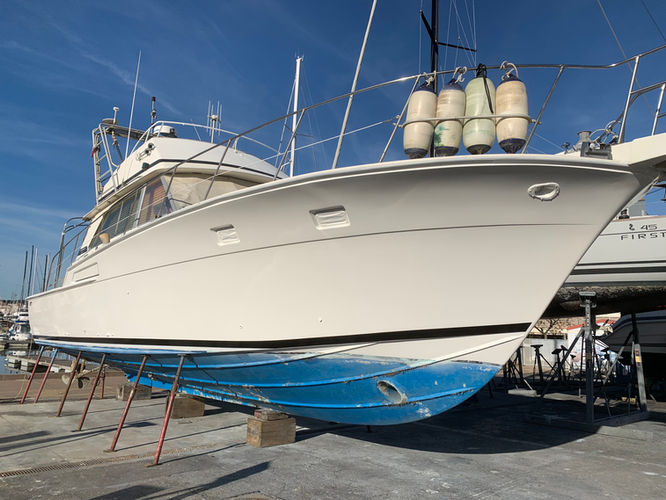 Bertram 46.6, 14M fishing-type launch. The Bertram shipyard is known worldwide for the quality of construction of its boats. The reputation for seakeeping during navigation makes them sought-after units. is a luxury sports yacht that combines performance, comfort and style. Designed for sailing enthusiasts, it offers an unrivaled experience on the water, whether for sea trips or extended cruises. With its elegant design and advanced technical features, the Bertram 46.6 is the perfect choice for those seeking adventure and refinement. This model has been rebuilt and has only had 3 owners. The interior and exterior spaces are large and offer undeniable comfort. This boat is equipped with 2 diesel engines whose consumption at 15 knots is 40L/H. The francization tax is €1022/year. It also has a berth. Visit possible every day by appointment. Do not hesitate to contact us for more information.